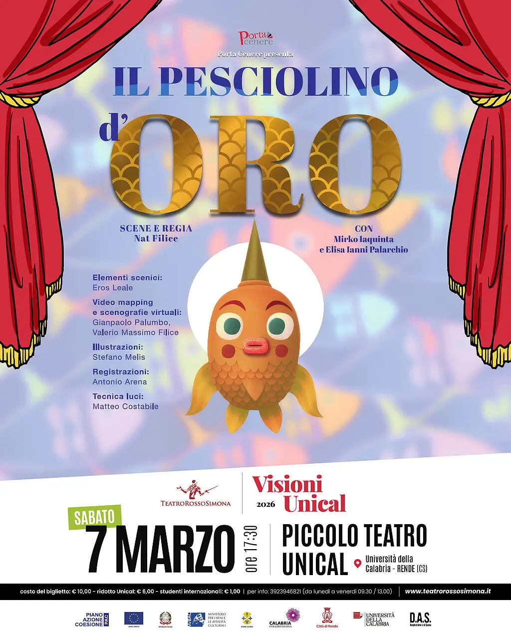 Il cartellone proseguirà sabato 7 marzo con lo spettacolo per ragazzi “Il pesciolino d’oro”, ispirato alla fiaba di Aleksandr Pushkin e caratterizzato da un forte impatto visivo grazie al videomapping e alle tecnologie immersive. La stagione “Visioni Unical”, curata da Teatro Rossosimona e diretta da Lindo Nudo, accompagnerà il pubblico fino a maggio 2026 con un programma dedicato alla nuova drammaturgia, al teatro ragazzi e alla danza contemporanea, con l’obiettivo di valorizzare il Piccolo Teatro come spazio di incontro culturale e sperimentazione artistica.