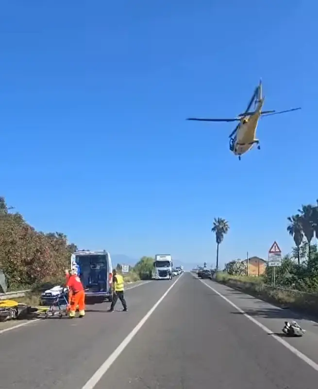 Grave incidente sulla SS106 a Torricella: elisoccorso in azione dopo lo scontro tra moto e furgone