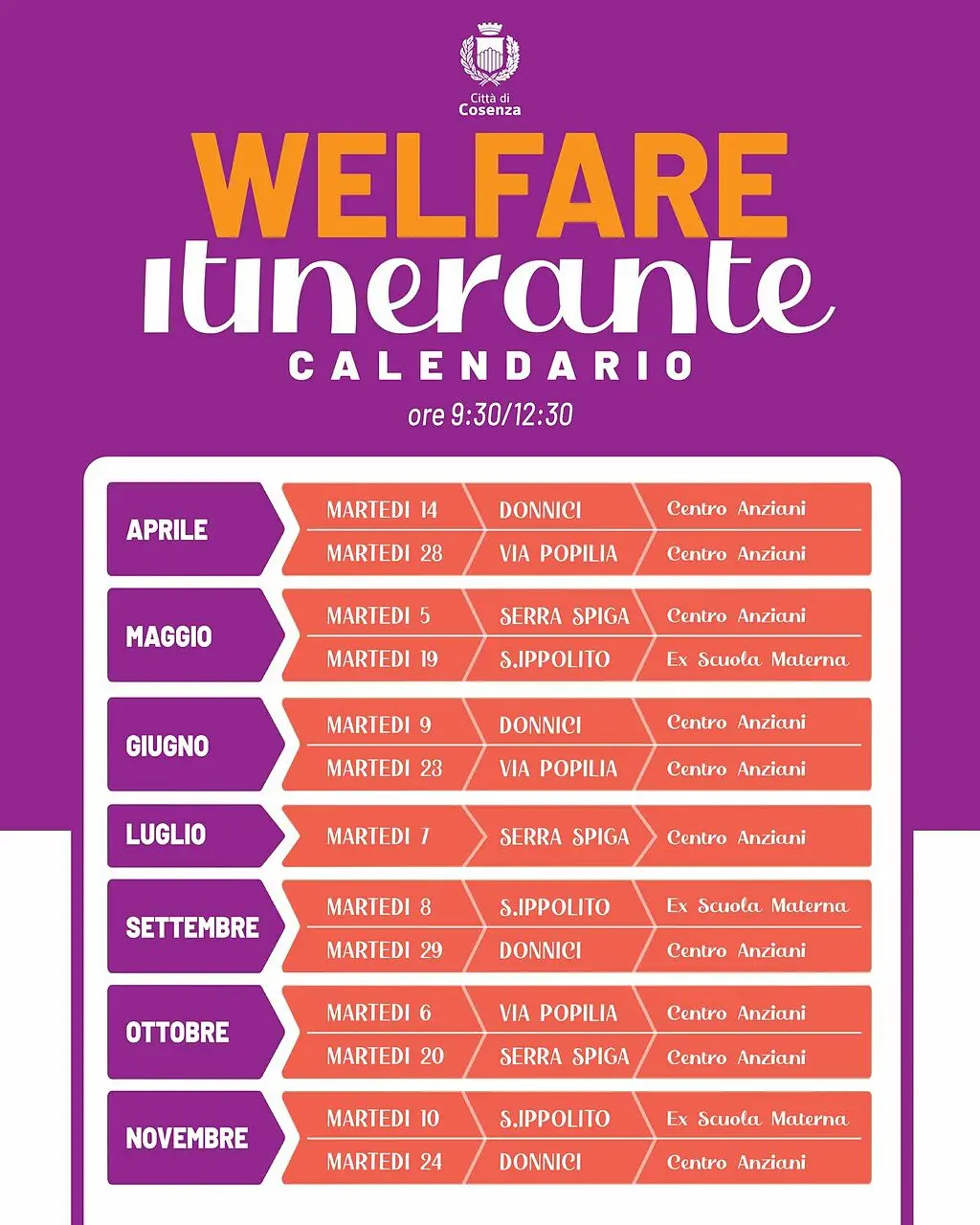 Il progetto prevede lo spostamento degli operatori del settore welfare nelle aree più periferiche della città, con incontri organizzati in luoghi di riferimento come centri anziani e strutture pubbliche. Le prime tappe interesseranno quartieri come Donnici, via Popilia, Serra Spiga e Sant’Ippolito, con un calendario che si svilupperà nei mesi successivi. Gli appuntamenti si terranno ogni martedì mattina, offrendo ai cittadini la possibilità di confrontarsi direttamente con gli assistenti sociali.