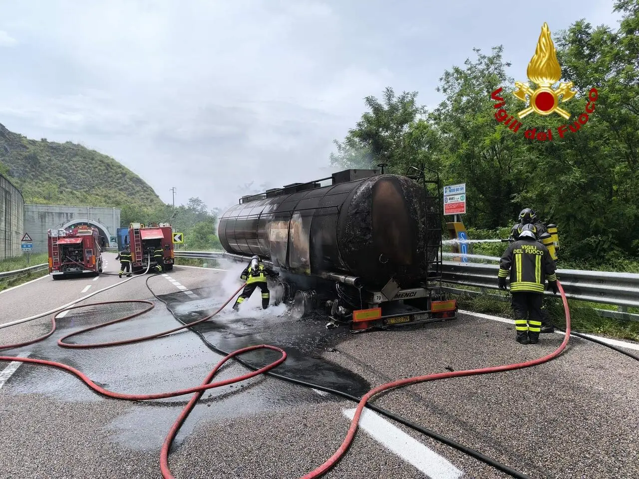 Autotreno in fiamme sull’A2, intervento dei vigili del fuoco a San Mango d’Aquino