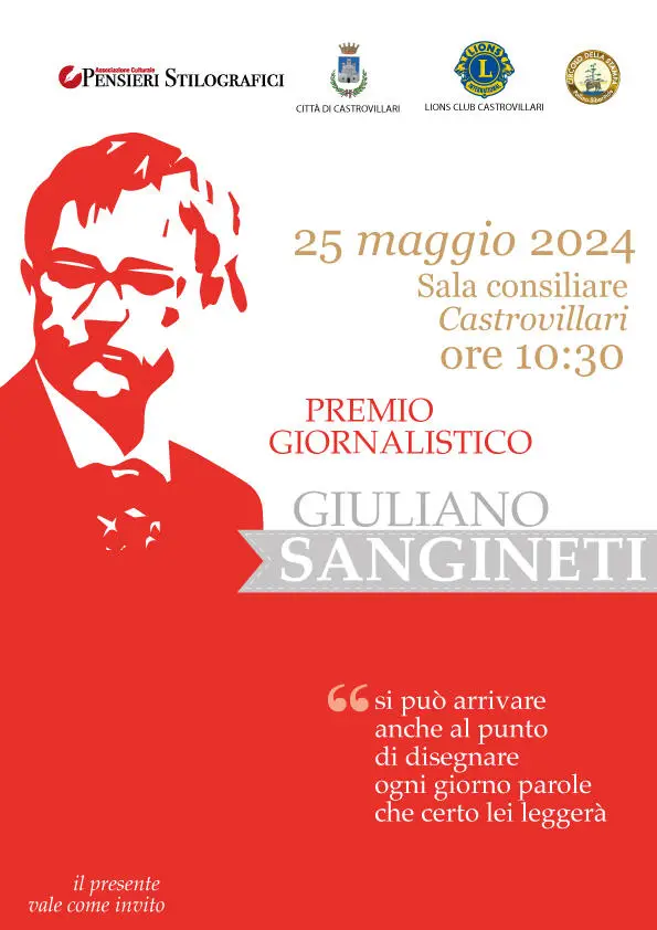 Nel ricordo di un grande uomo, un abile professionista dell'informazione calabrese, un docente appassionato della scuola e dei giovani, ritorna il Premio Giornalistico Giuliano Sangineti, ideato dalla sua famiglia in collaborazione con l'associazione culturale Pensieri Stilografici (editore della testata Abmreport.it) e il patrocinio del Comune di Castrovillari, del Lions Club Castrovillari e del Circolo della stampa Pollino - Sibaritide. «Un premio per fare memoria, guardare al presente e rinnovare quel patto di responsabilità tra società civile e mondo dell'informazione che a Giuliano piaceva tanto» - hanno sottolineato gli organizzatori presentando la quarta edizione del premio giornalistico.