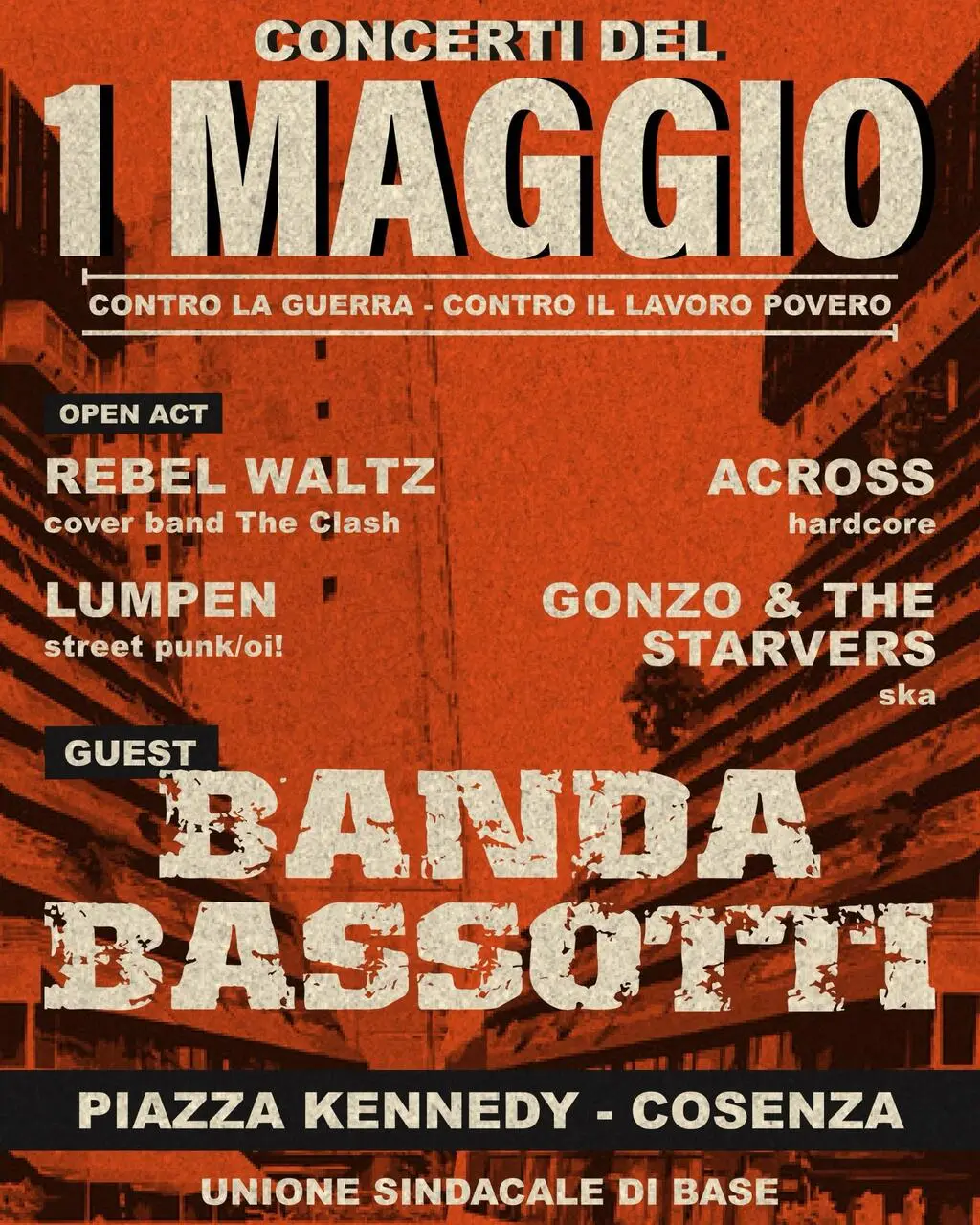 Durante la giornata si alterneranno momenti di riflessione e confronto, con tavole rotonde sui temi della pace, della lotta al precariato e della difesa dei diritti sociali. Sul palco si esibiranno anche numerosi gruppi musicali locali, insieme a nomi noti come i Lumpen e la Banda Bassotti, per un Primo Maggio che sarà anche festa, condivisione e cultura. L’obiettivo è chiaro: costruire insieme un’alternativa fondata sulla solidarietà, sulla giustizia sociale e sul diritto a una vita dignitosa, libera da guerra, sfruttamento e disuguaglianza.