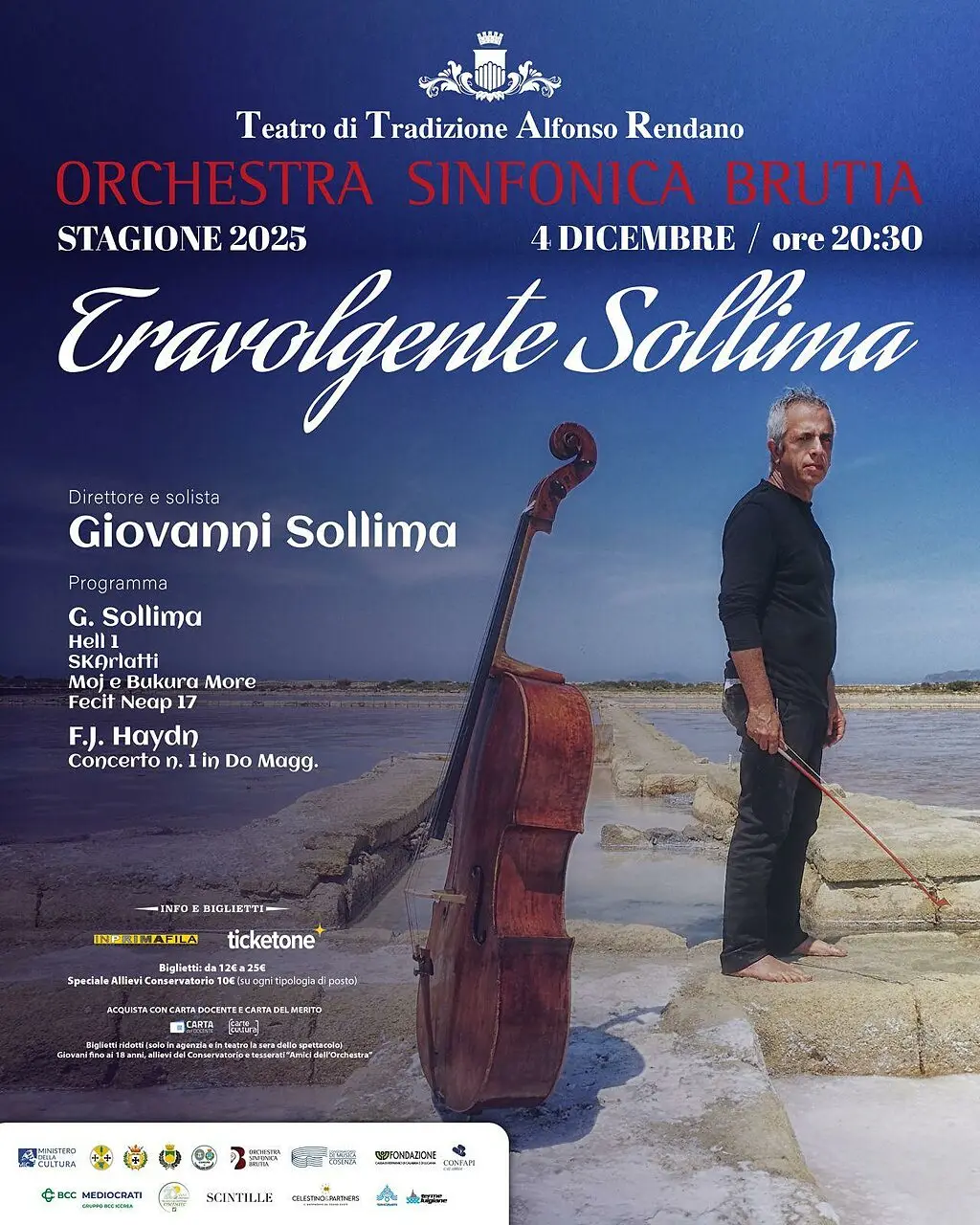 Sul palco del Rendano, Sollima sarà affiancato dagli archi dell’Orchestra Sinfonica Brutia, una delle realtà musicali più vivaci della Calabria, composta da giovani musicisti che si distinguono per talento e passione. Insieme interpreteranno alcune composizioni originali del Maestro, dando vita a un’esperienza sonora che unisce virtuosismo e intensità emotiva. Il programma sarà completato dall’esecuzione del Concerto n.1 in do maggiore di Joseph Haydn, un capolavoro del repertorio classico che dialogherà idealmente con le composizioni contemporanee di Sollima.