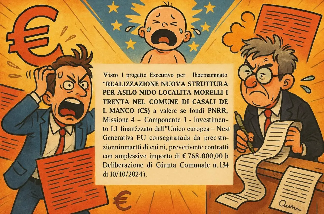 A Casali del Manco nasce il primo asilo nido epico-burocratico finanziato dal Pnrr: tra acronimi, determine chilometriche e architetti supereroi, la vera protagonista è l’amministrazione in versione blockbuster