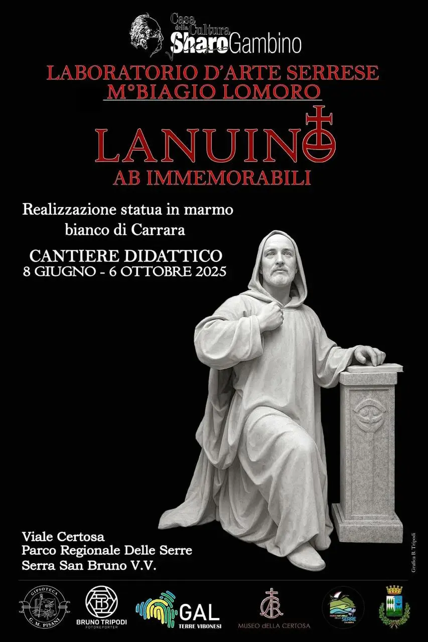 Il Progetto Lanuino si propone di realizzare una statua in marmo di Carrara, alta 230 cm, raffigurante il beato Lanuino, compagno di San Bruno. Questo cantiere didattico coinvolgerà i giovani allievi della Casa della Cultura, guidandoli attraverso tutte le fasi della creazione scultorea: dalla progettazione al modello in gesso, fino alla scolpitura finale. Il laboratorio si svolgerà nei pressi della Certosa, offrendo un'esperienza immersiva sia artistica che spirituale.