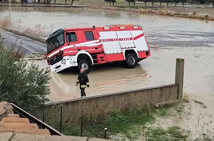 Maltempo sulla SS106 tra Cropani e Steccato di Cutro, camion dei Vigili del Fuoco ribaltato
