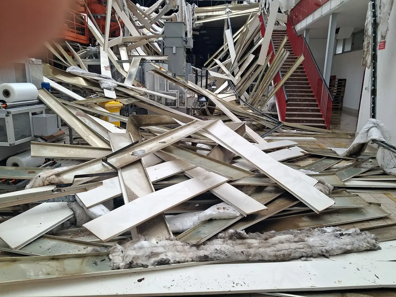 Le condizioni meteorologiche avverse hanno infatti divelto parte della copertura del capannone industriale, una struttura di oltre cinquemila metri quadrati utilizzata per la linea di produzione e confezionamento del prodotto finito.
