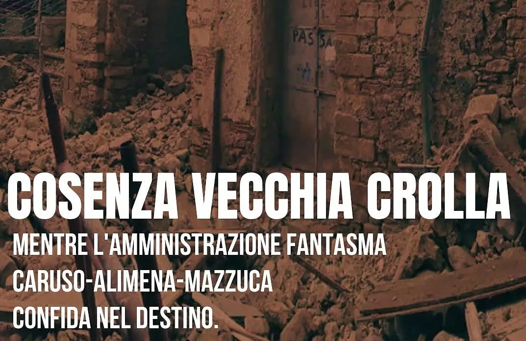 Per il collettivo civico, il crollo rappresenta “la misura del fallimento politico e dell’incapacità amministrativa della giunta Caruso-Alimena-Mazzuca”. «Un’amministrazione che confida nel fatalismo per sbloccare i cantieri ha rinunciato a governare. La tutela del centro storico richiede competenza, visione, dialogo e coerenza: non si può amministrare sperando che il fato risolva problemi trascurati per quattro anni e mezzo».