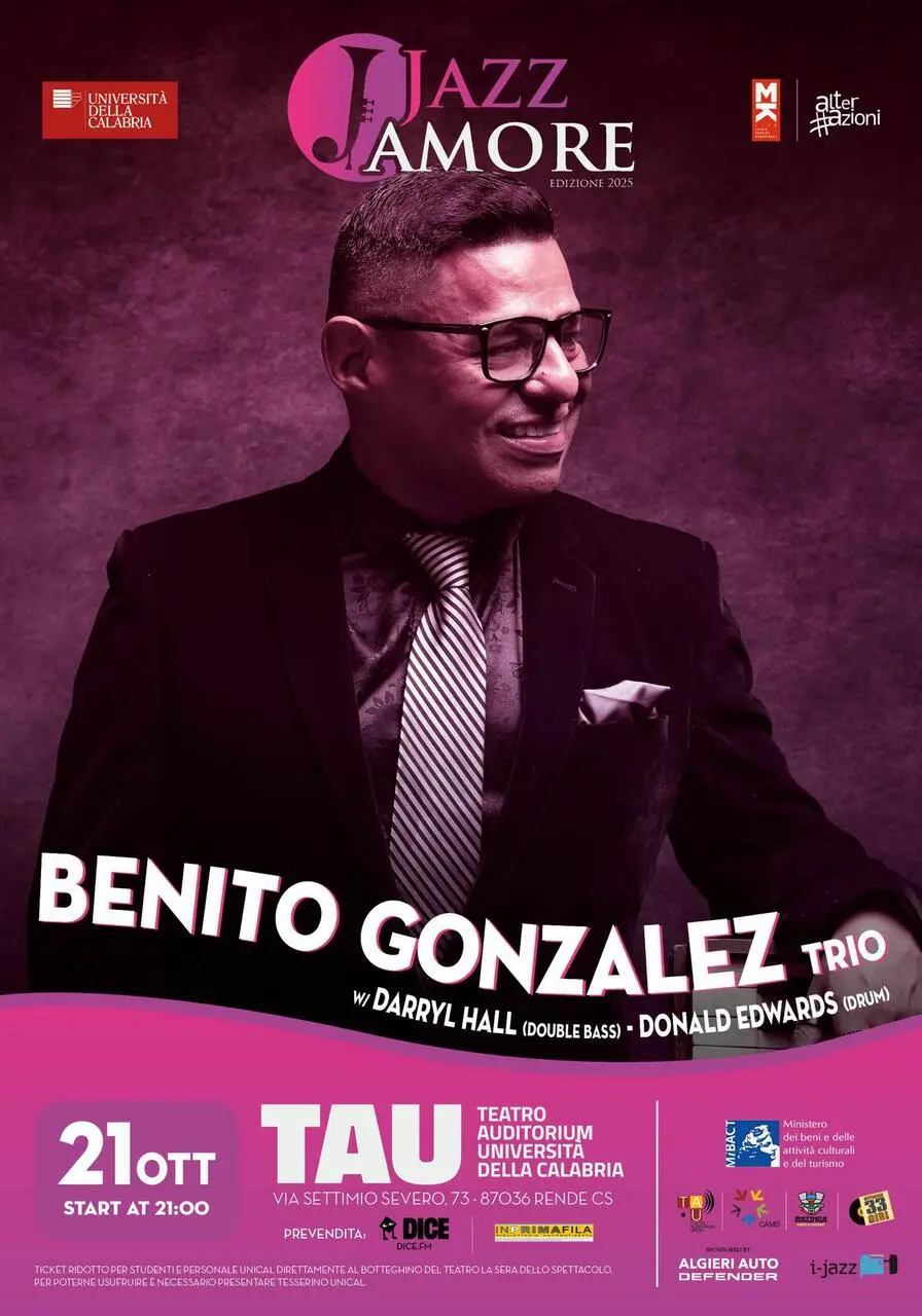 Prosegue la rassegna JazzAmore, unico progetto in Calabria a proporre un cartellone jazz distribuito lungo l’intero anno. Martedì 21 ottobre alle 21.00, al Teatro Auditorium dell’Università della Calabria, arriverà uno dei protagonisti assoluti della scena jazz internazionale: il pianista venezuelano Benito Gonzalez. Il concerto rappresenta un nuovo traguardo per la rassegna, che negli anni ha consolidato prestigio e credibilità ben oltre i confini regionali.