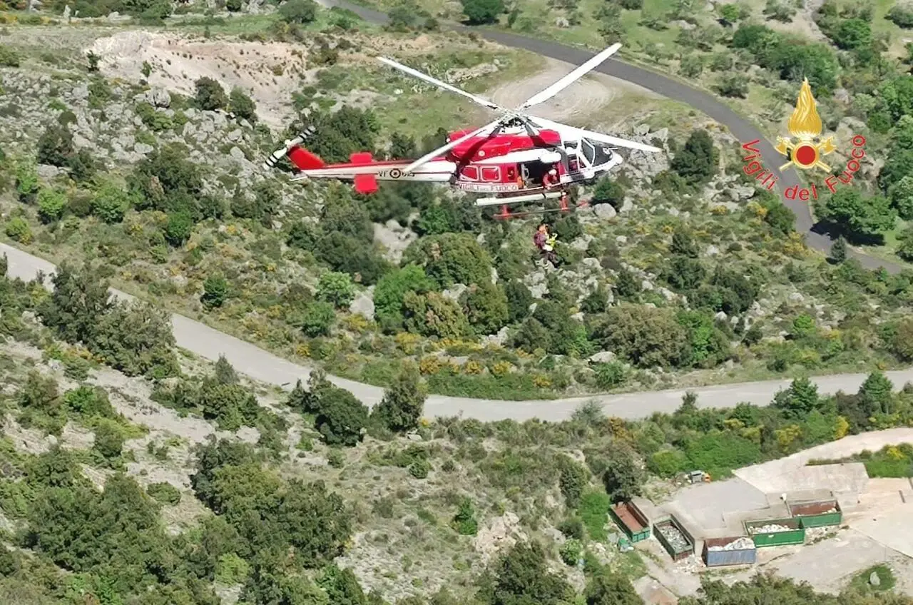 Giunti sul posto, i vigili del fuoco hanno constatato che la zona particolarmente impervia rendeva necessario l'intervento di un mezzo aereo. La Sala operativa regionale dei vigili del fuoco Calabria ha quindi attivato il Reparto volo di Lamezia Terme, che ha inviato in zona l’elicottero Drago Vf62.