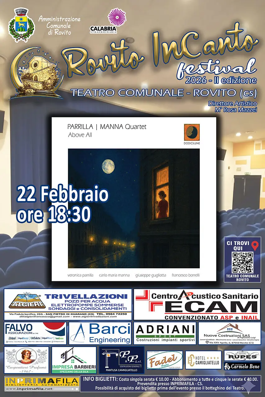 Il Teatro Comunale di Rovito si prepara ad accogliere la II edizione del Rovito InCanto Festival, rassegna musicale fortemente voluta dall’Amministrazione comunale e dedicata alla voce come filo conduttore di un viaggio sonoro capace di attraversare generi e sensibilità differenti.