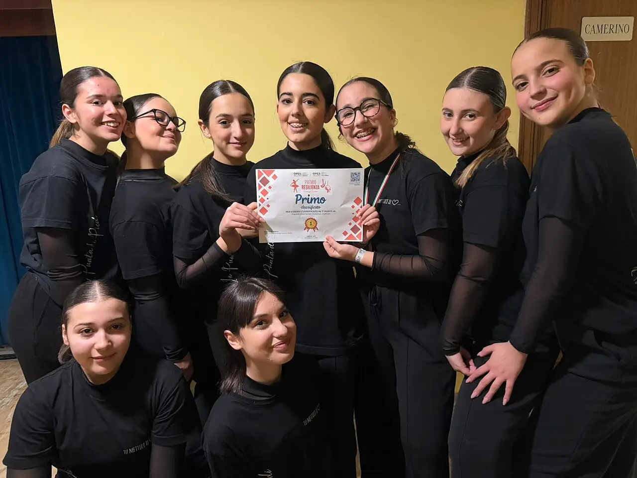 Primo posto anche per il gruppo juniores, composto da: Simonetta Aragona, Isabel Costabile, Simona D’Agostino, Miriam Ferrato, Chiara Filice, Martina Papalia, Greta Sconosciuto e Rebecca Vennera; seguite dalla maestra Anna Deriu, con una coreografia intensa e carica di significato, dedicata alla loro compagna Greta A. Un messaggio profondo quello portato in scena: tutti possiamo avere delle debolezze, ma dentro di noi troviamo la forza per superarle. Un abbraccio danzato per ricordare a Greta che è, e sarà sempre, parte integrante di quella che per loro è una vera famiglia.