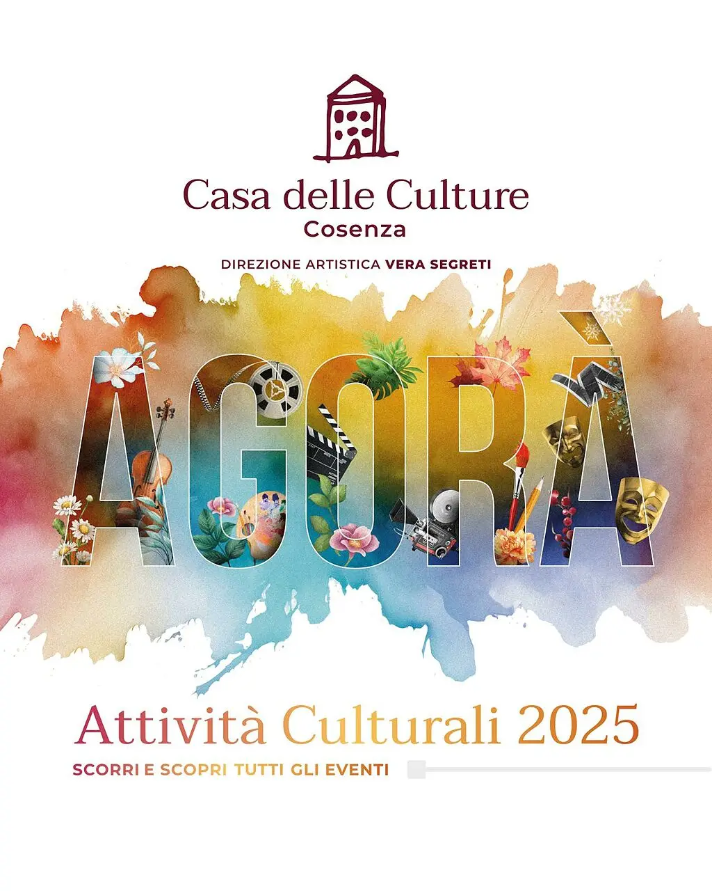 La Casa delle Culture di Cosenza presenta un nuovo calendario di eventi nell’ambito della rassegna “Agorà”, diretta da Vera Segreti. Il programma, che abbraccia teatro, musica, letteratura, arte visiva e formazione, accompagna la città fino alla fine dell’anno con un fitto calendario di appuntamenti. La rassegna si apre il 14 novembre con la dodicesima edizione di “Corti Cosenza”, dedicata ai linguaggi artistici contemporanei e ai giovani talenti. Seguiranno la presentazione del libro “Eros” di Daniele Bilotto, la mostra fotografica “Eros, tra pensiero e fotografia” e il concerto “Ritratto di un cantautore” di Daniele Moraca. A partire dal 18 novembre, Agorà farà tappa negli istituti scolastici della provincia con i “Concerti della Pace” di Sasà Calabrese, Salvatore Cauteruccio e Vera Segreti, cinque appuntamenti itineranti dedicati ai valori della libertà e della solidarietà.