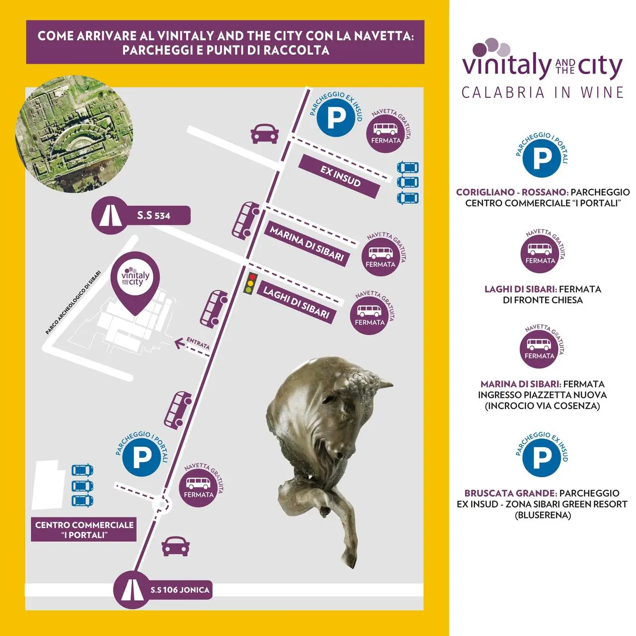 L'Arsac, Azienda regionale per lo sviluppo dell'Agricoltura calabrese, si sta occupando dell’aspetto organizzativo ed ha messo in campo una serie di iniziative per permettere ai visitatori di raggiungere facilmente il Parco Archeologico e vivere al meglio la propria esperienza al Vinitaly and The City.