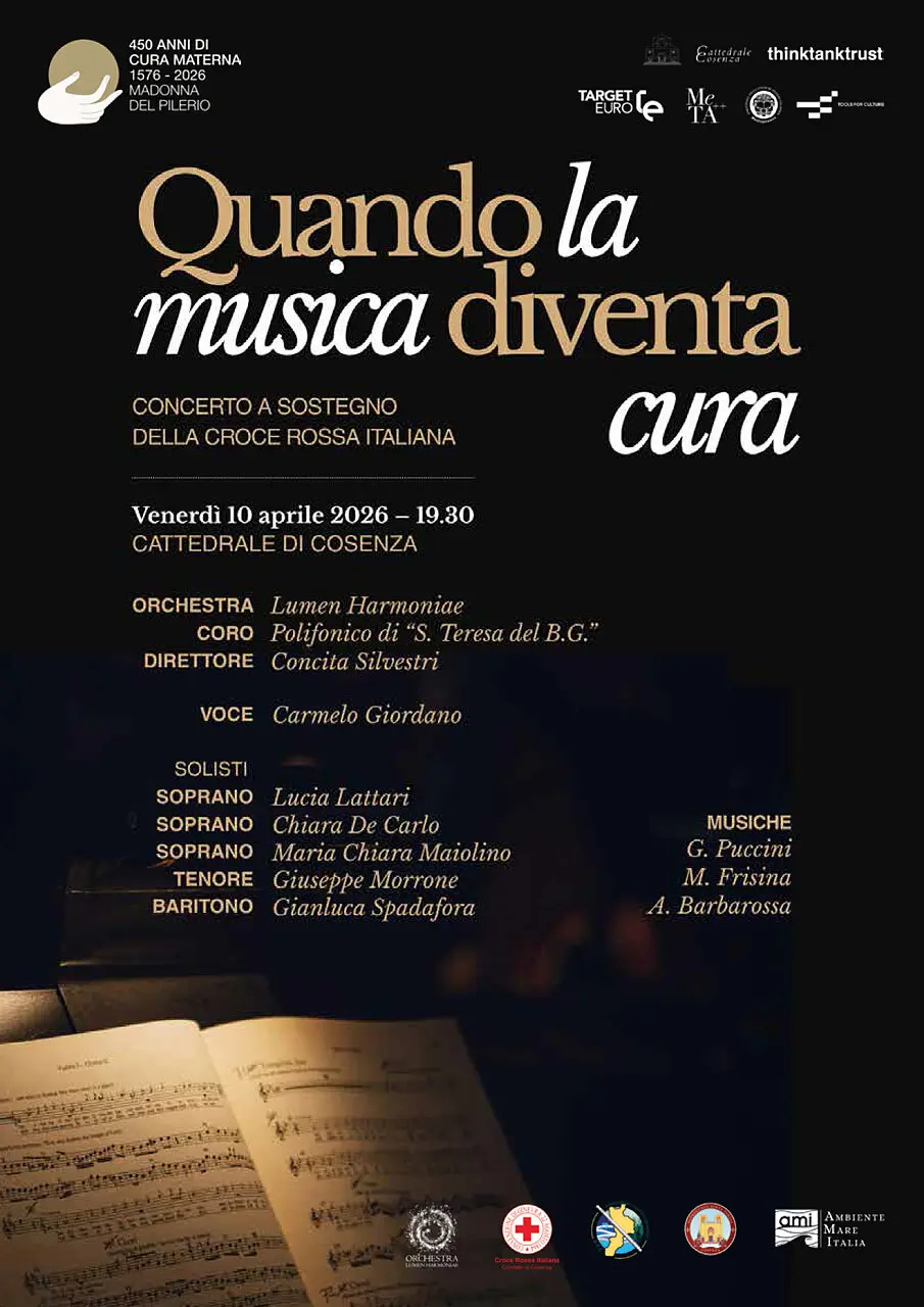 Non è solo un concerto, ma un gesto collettivo che unisce bellezza e impegno sociale. “Quando la musica diventa cura” è l’evento in programma venerdì 10 aprile 2026 alle ore 19.30 nella Cattedrale di Cosenza, inserito nelle celebrazioni per i 450 anni del miracolo della Madonna del Pilerio. L’iniziativa nasce dalla collaborazione tra Think Tank Trust e la Croce Rossa Italiana – Comitato di Cosenza, con l’obiettivo di mettere la cultura al servizio delle persone e generare un impatto concreto sul territorio.