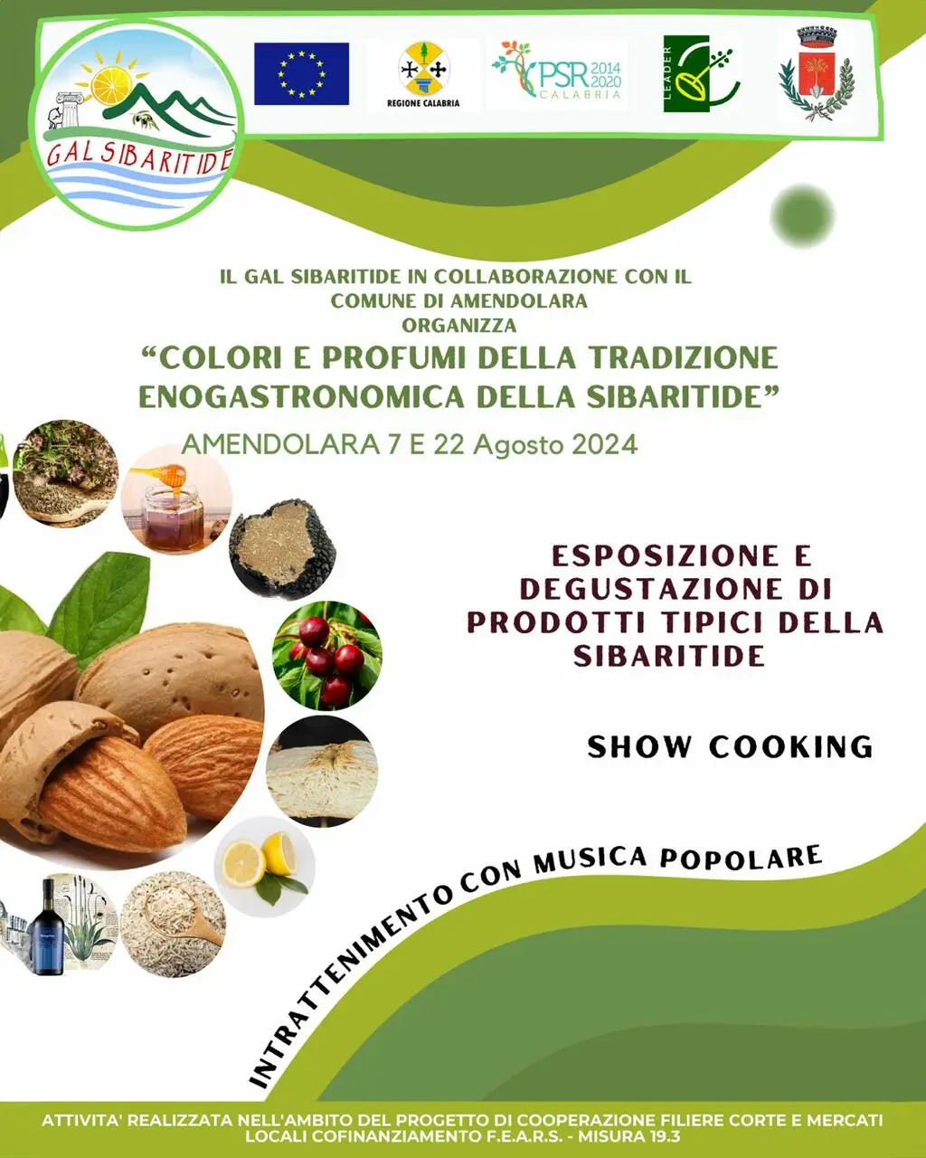 Il 22 agosto 2024 alle 21 ad Amendolara, in Piazza Giovanni XXIII, un nuovo appuntamento per celebrare l'autenticità e la qualità dei prodotti locali, offrendo un'esperienza sensoriale ed indimenticabile attraverso i sapori, i colori e i profumi della Sibaritide. L'attività è realizzata nell'ambito del progetto di cooperazione filiere corte e mercati locali cofinanziamento F.E.A.R.S. - Misura 19.3.