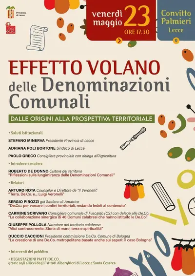 Venerdì 23 maggio 2025, a Lecce, si svolgerà il convegno dal titolo: “Effetto volano delle Denominazioni Comunali”