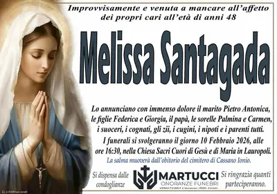 L'addio a Melissa Santagada: oggi i funerali dopo la tragica caduta a Lauropoli
