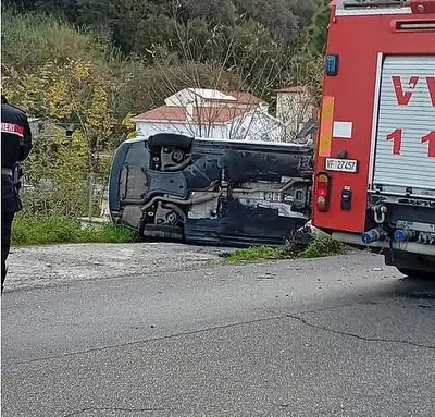 Paola, Violento scontro in via Sant’Agata: utilitaria si ribalta, giovane incastrato tra le lamiere