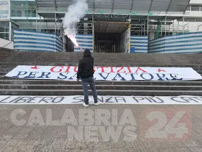 Ultras, amici e conoscenti riuniti sotto al Tribunale di Cosenza per il tifoso morto a Villa degli oleandri