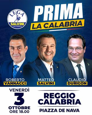 La Lega chiude la campagna elettorale a Reggio Calabria con Salvini, Vannacci e Durigon